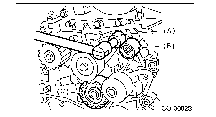 6) Install the belt idler No. 2 (C).