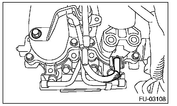 16. Loosen the clamp which holds the fuel hose to the fuel injector pipe, and then disconnect the fuel hose from pipe.
