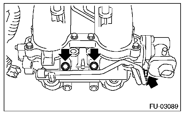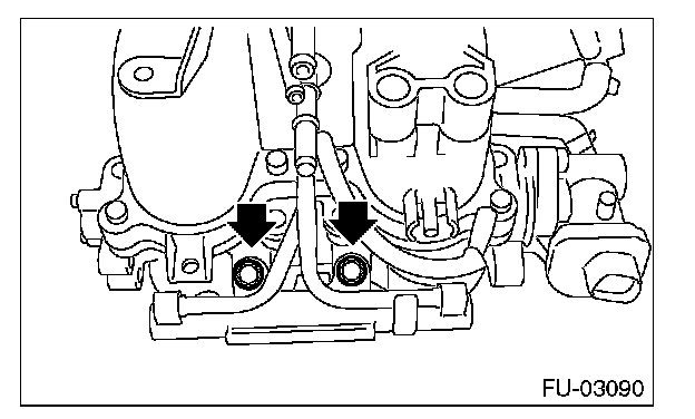 7. Tighten the bolts which secure fuel injector pipe onto intake manifold.