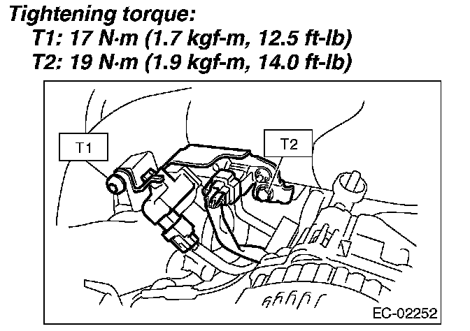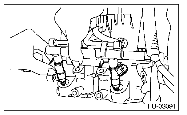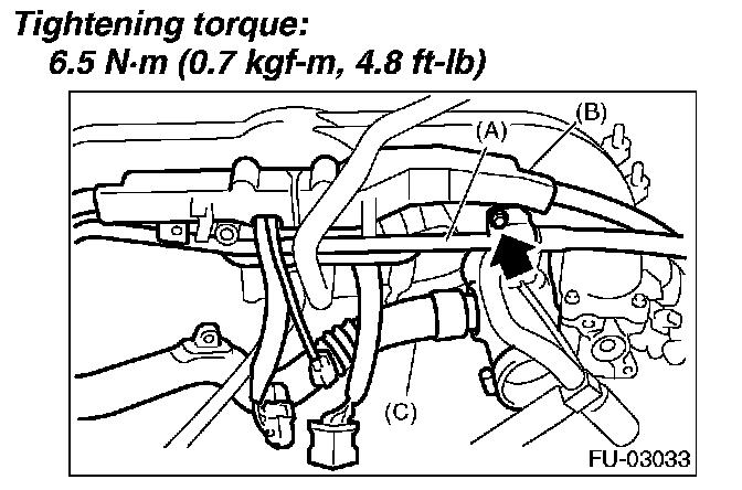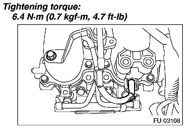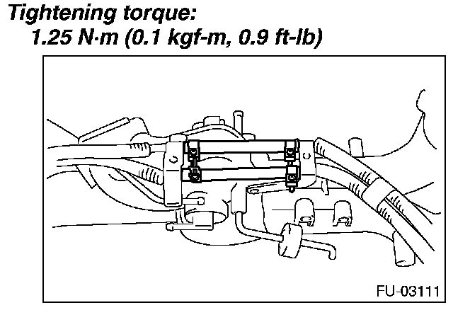 5. Tighten the bolts which secure fuel injector pipe onto intake manifold.