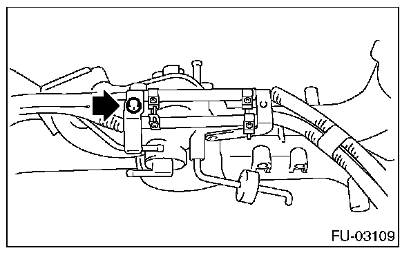 1. Remove the engine ground terminal from the fuel pipe protector LH and remove the fuel pipe protector LH from the intake manifold.