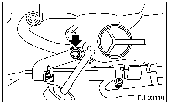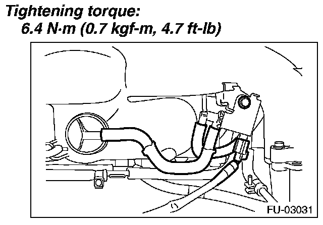 8. Tighten the bolt which holds the fuel injector pipe LH to the front side of the intake manifold, and connect the pressure regulator vacuum hose to the intake manifold.