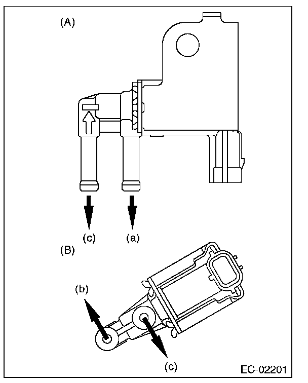 13. Connect the evaporation hose to the purge control solenoid valve 2.