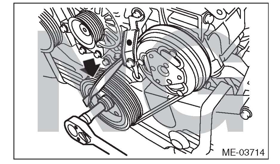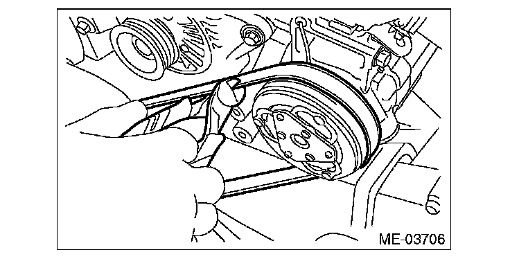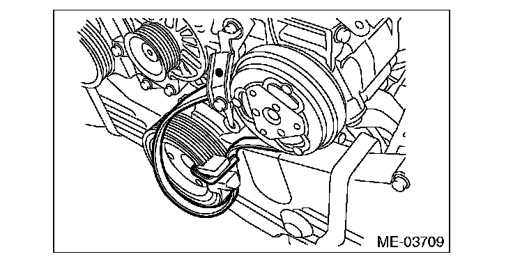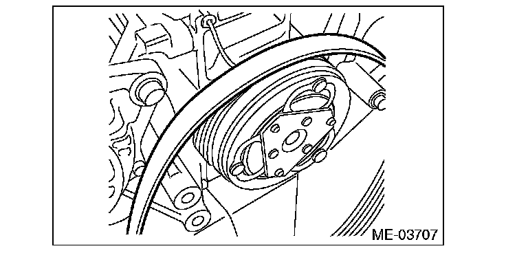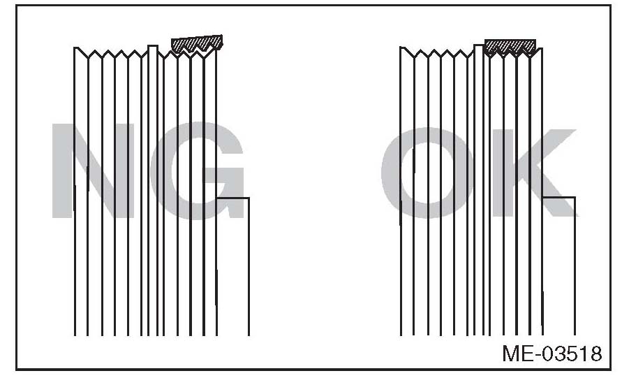 2) The ribs of the rear side belt are properly riding on the grooves of the A/C compressor pulley.