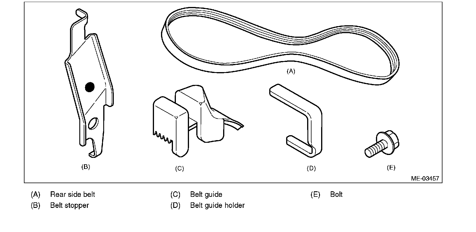 ^ When installing the rear side belt, always use the provided tools (belt stopper, belt guide, belt guide holder and bolt).