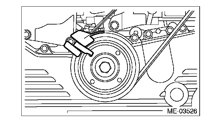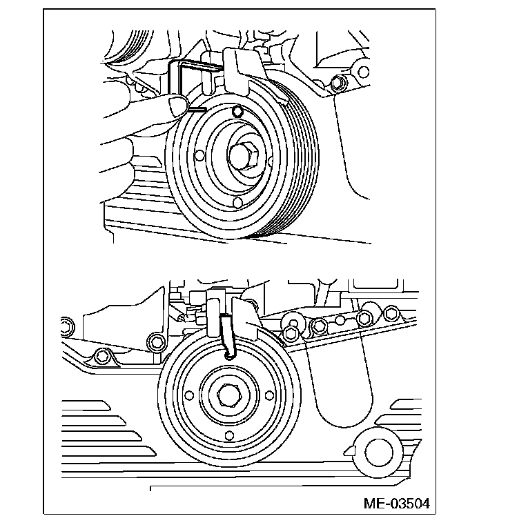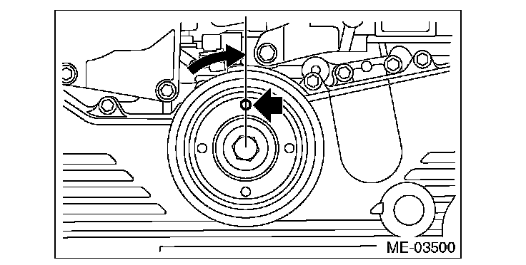 3) Turn the crank pulley to the right slowly, until the crank pulley service hole near the top.