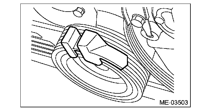 7) Insert the belt guide holder into the crank pulley service hole so as to clamp the belt guide.