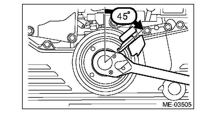 8) Turn the crank pulley slowly to the right, and set the belt guide at an approximately 45°position.
