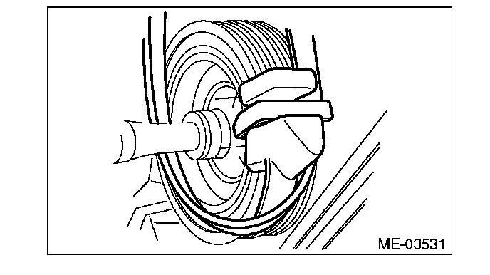 CAUTION: When rotating the crank pulley, be careful that the belt guide does not deviate from the groove of the crank pulley.