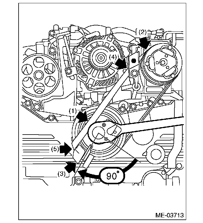 12) While checking for the following, turn the crank pulley slowly to the right by approximately 90°and set the belt guide to the position shown in the figure.