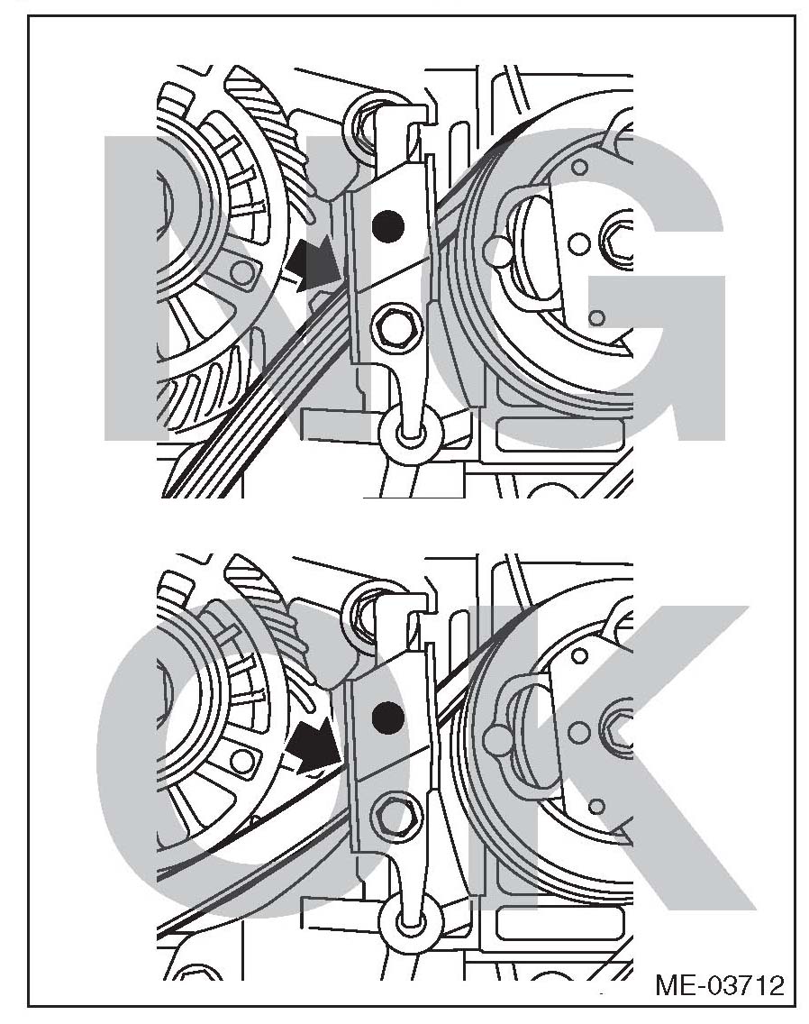 ^ Do not reuse the front side belt if there is any oil, grease or coolant on the belt.