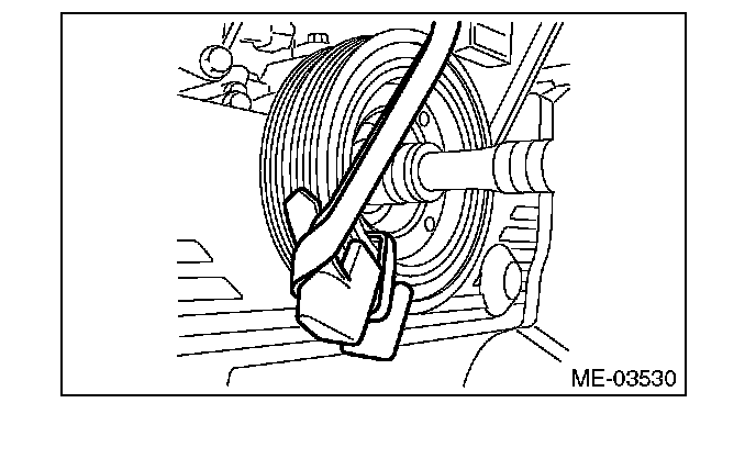 2) Wipe off any oil, water, mud or rust attached to the front side of the crank pulley with a cloth.