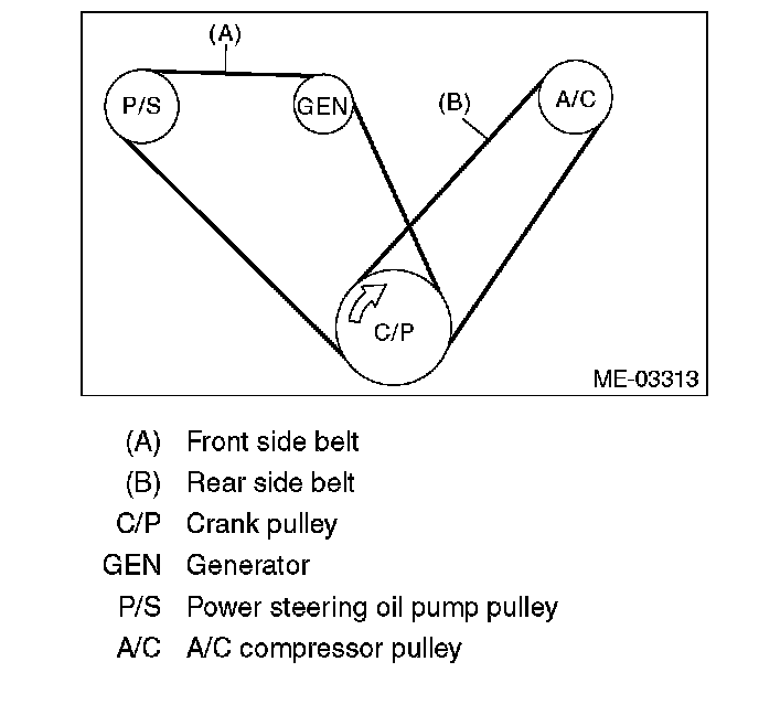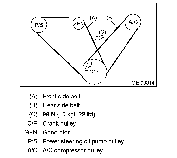 NOTE: Because the rear side belt is a stretch type belt, it is not necessary to check deflection and tension.