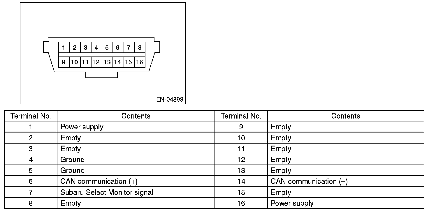 NOTE: This connector is used for Subaru Select Monitor.