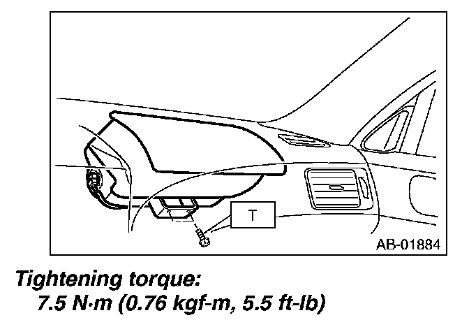 Tightening torque: 7.5 N.m (0.76 kgf.m, 5.5 ft.lb)