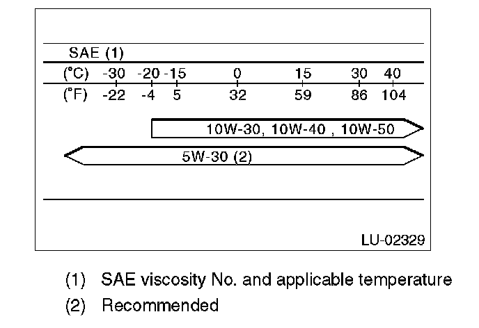 ^ If the vehicle is used in regions with high temperatures or in other severe environments, use oil with the viscosities shown below.