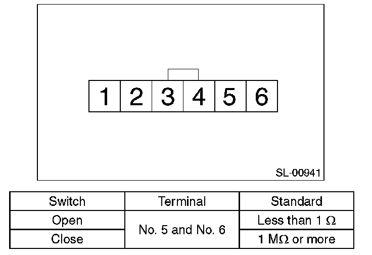 2. Inspect the continuity between the rear gate opener button connector terminals.