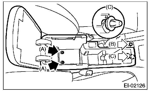 3. Remove bolts (A), screw (B), and clips (C).