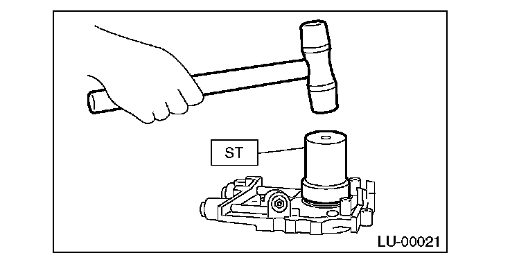 1) Assemble the front oil seal by using ST. ST 499587100 OIL SEAL INSTALLER