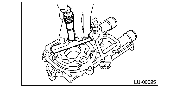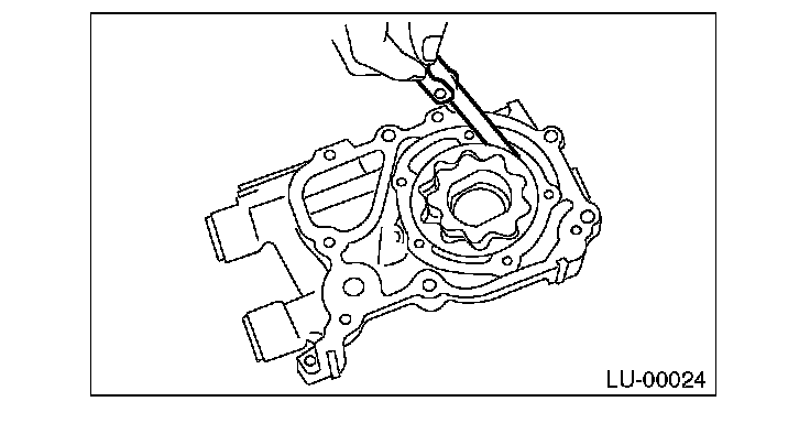Measure the clearance between the outer rotor and the oil pump case. If clearance is out of standard, replace the oil pump case.