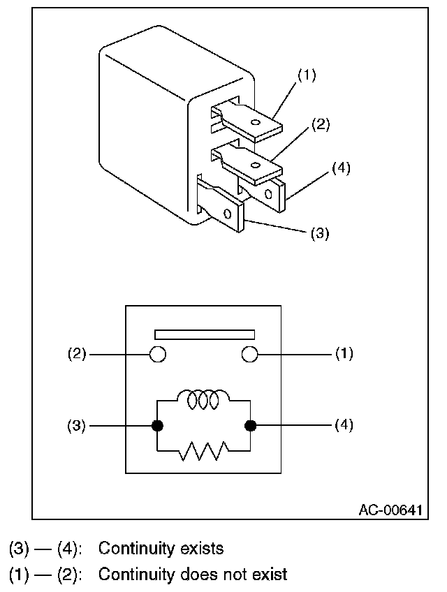 While applying battery voltage to the terminal between (3) and (4), check for continuity between (1) and (2).