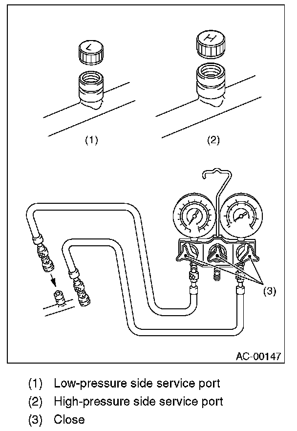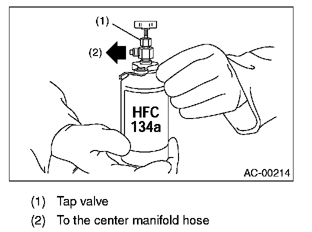 CAUTION: When filling while running the engine, do not open the high pressure side valve. Always fill from the low pressure side.