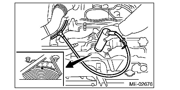 5) Start the engine and check the ignition timing at idle speed as shown below.