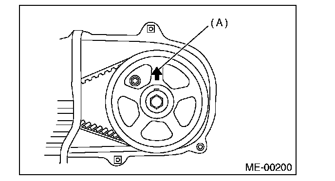 NOTE: When the arrow mark (A) on cam sprocket LH is at the top position, the #1 cylinder piston is at top dead center of the compression stroke.