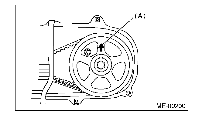 NOTE: When the arrow mark (A) on cam sprocket LH is at the top position, the #1 cylinder piston is at top dead center of the compression stroke.