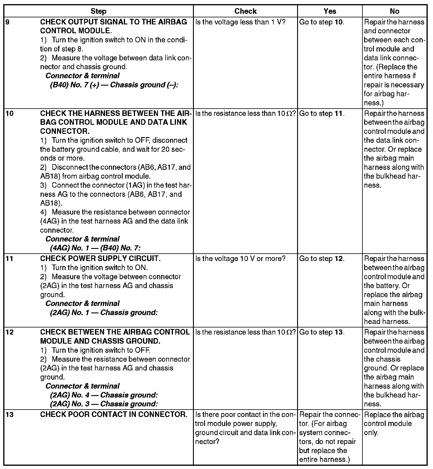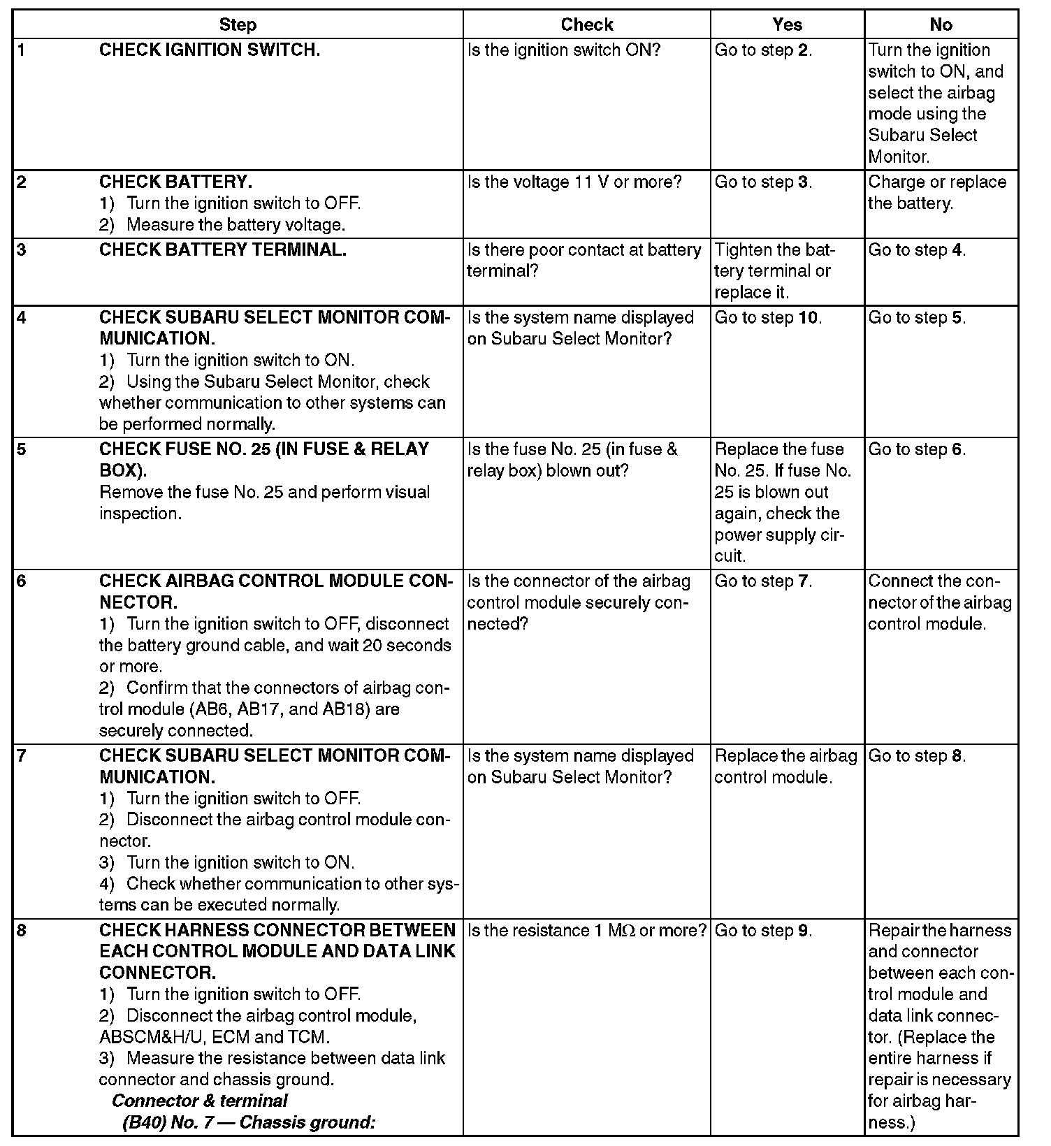 Communication is impossible between the airbag control module and the Subaru Select Monitor.