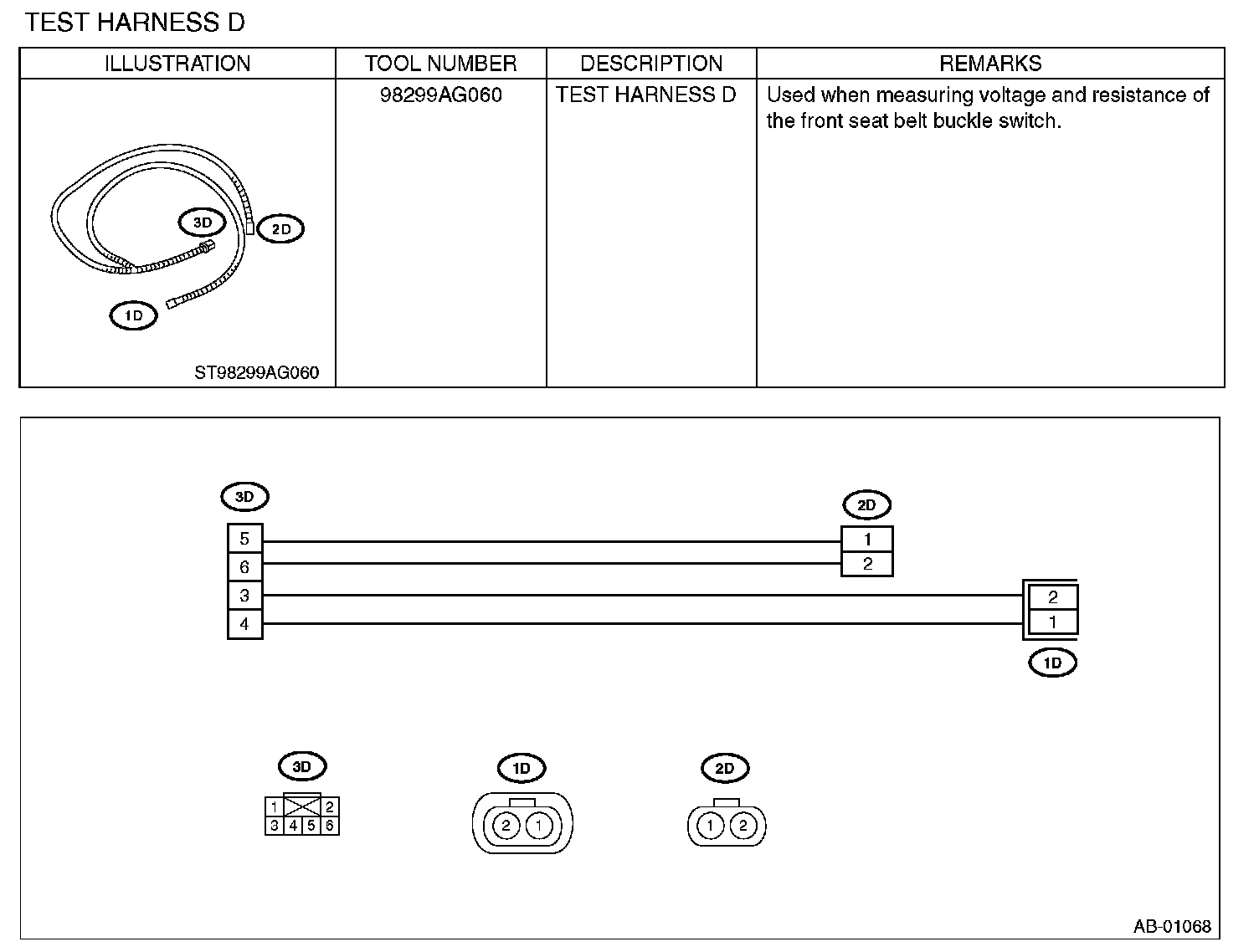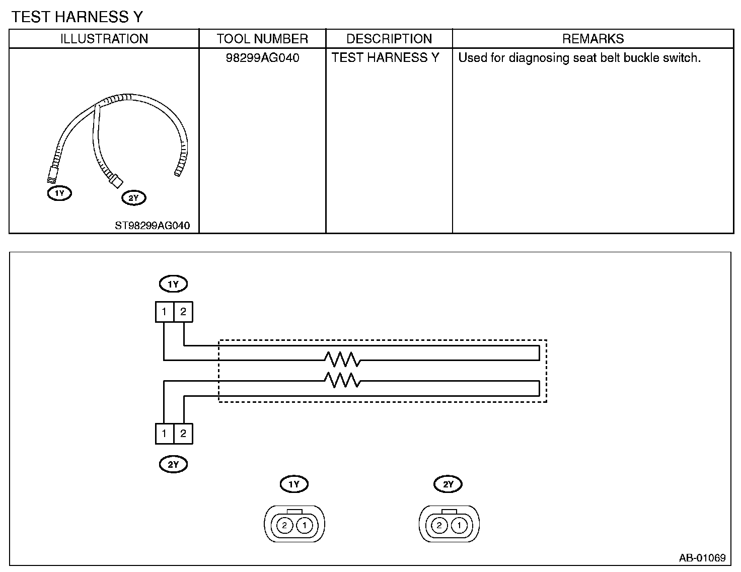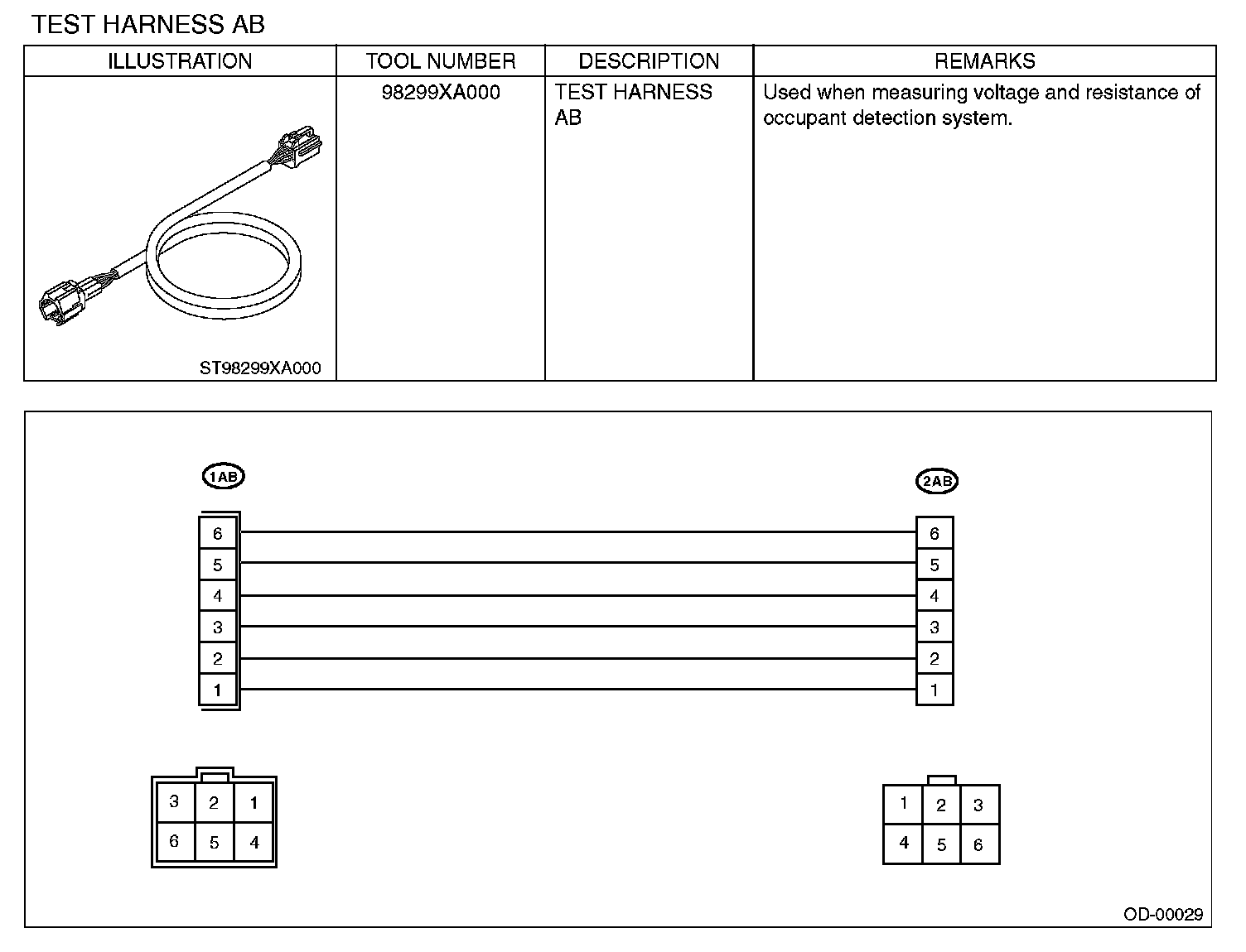 PREPARATION TOOLCAUTION: To measure the voltage and resistance of airbag system and occupant detection system components, be sure to use the specified test harness.