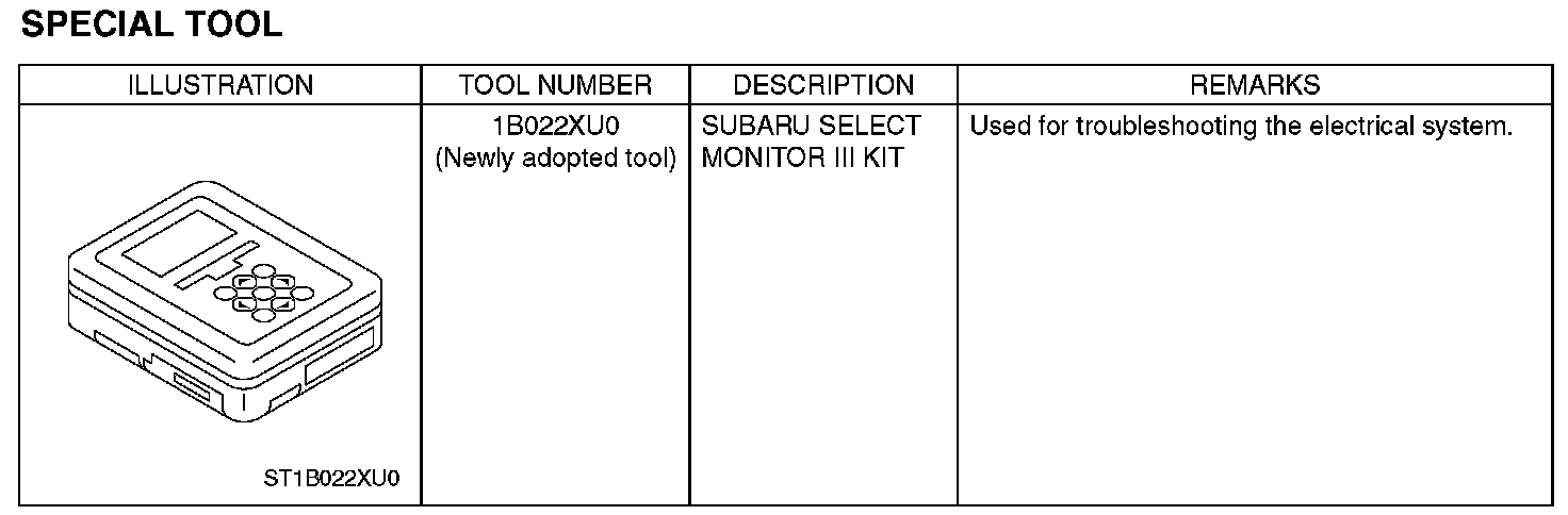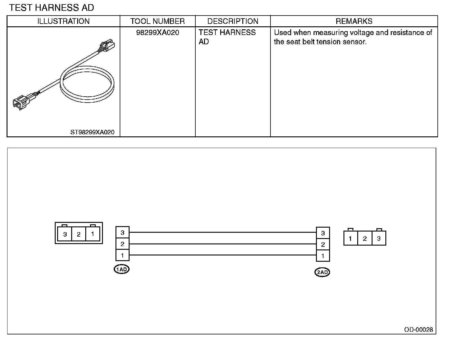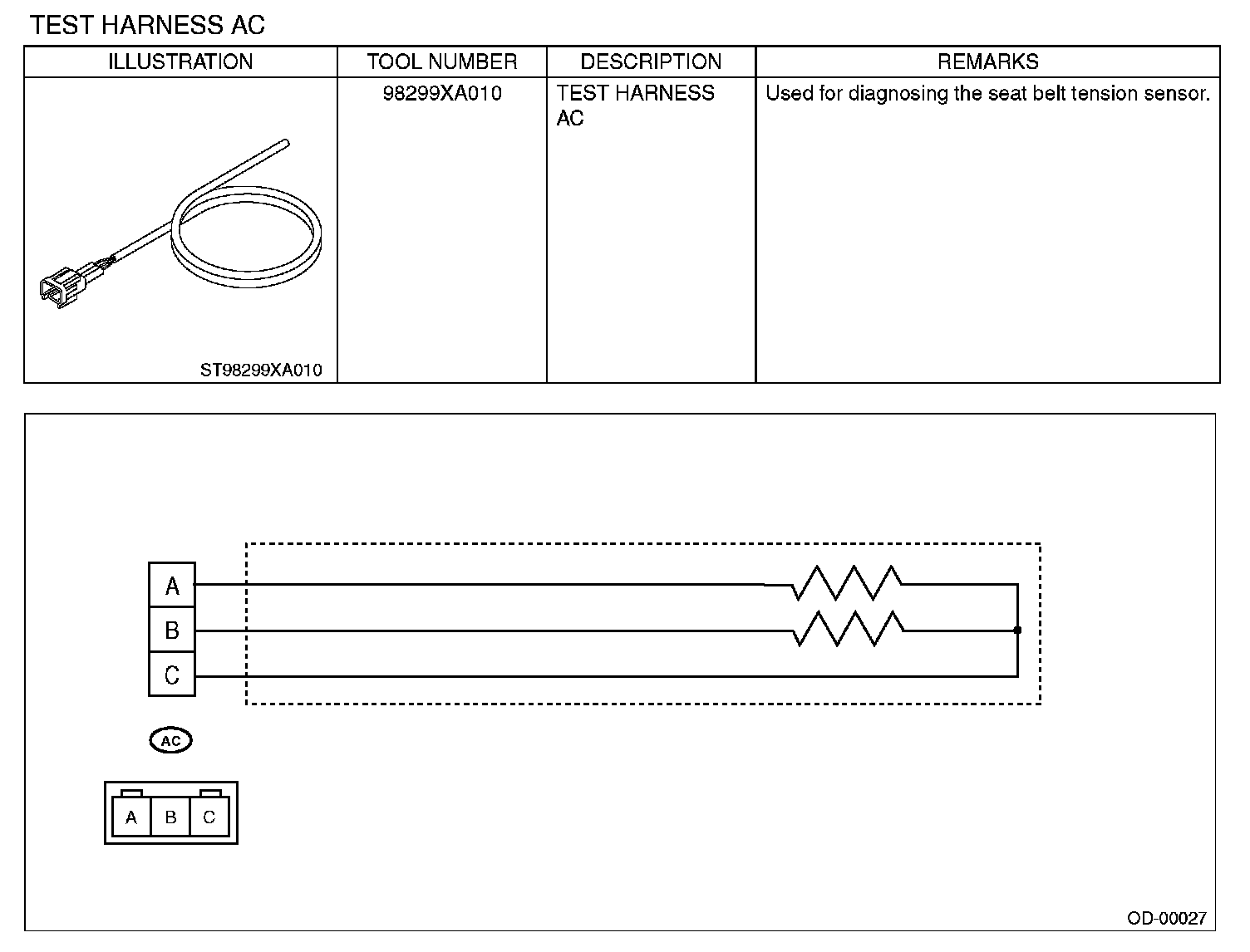 PREPARATION TOOLCAUTION: To measure the voltage and resistance of airbag system and occupant detection system components, be sure to use the specified test harness.