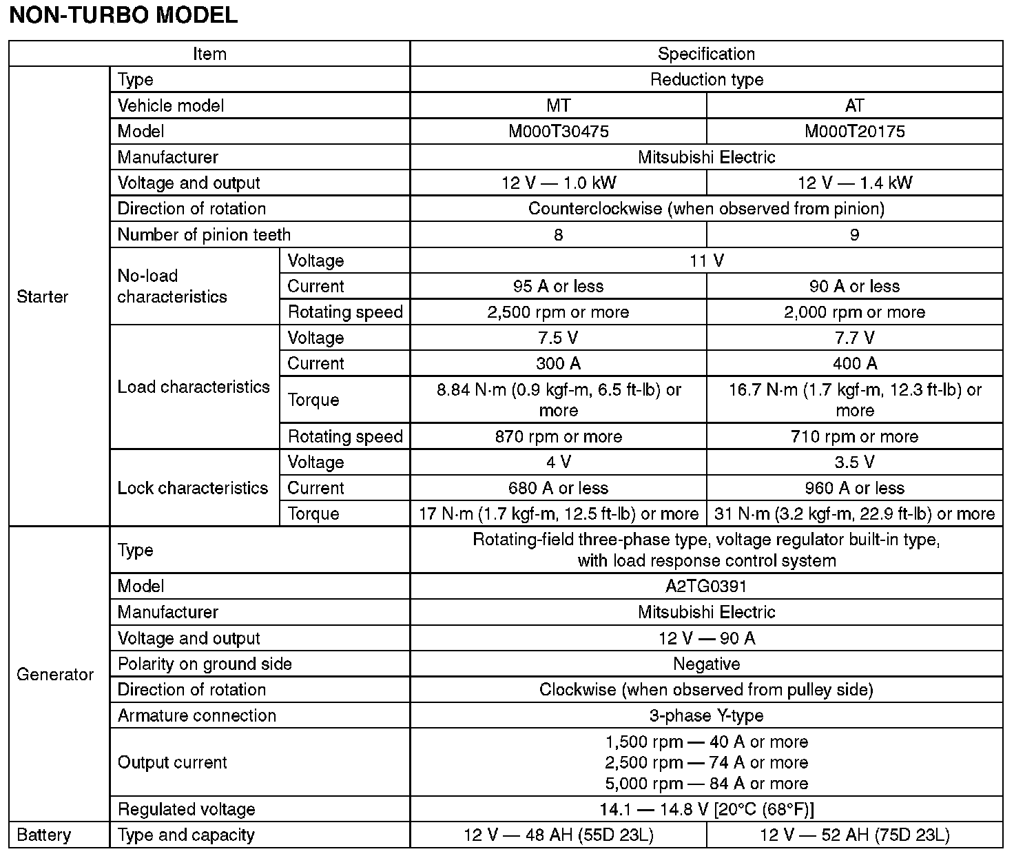 Electrical Specifications