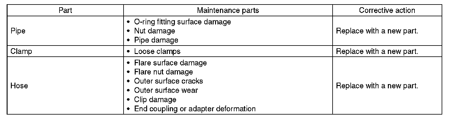 Although the surface layer materials of rubber hoses have excellent weathering resistance, heat resistance and resistance for low temperature brittleness, they are likely to be damaged chemically by brake fluid, battery electrolyte, engine oil and automatic transmission fluid and their service lives are to be very shortened. Wipe off hoses immediately if any of these come into contact with the hoses.
