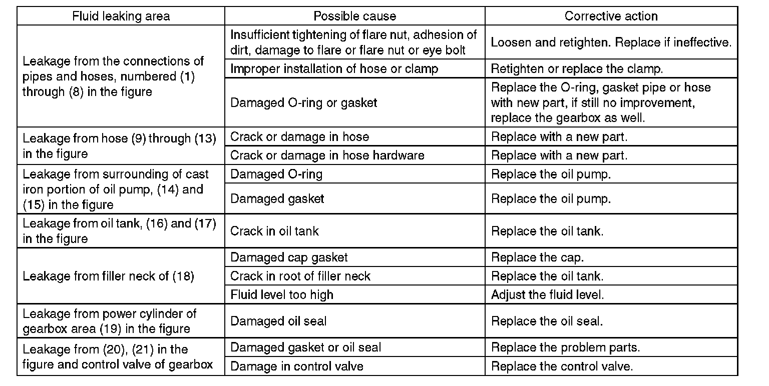 There are conditions in which a fluid leak is diagnosed, but is not actually leaking. This is because the fluid spilt during the last maintenance was not completely wiped off. Be sure to wipe off spilt fluid thoroughly after maintenance.