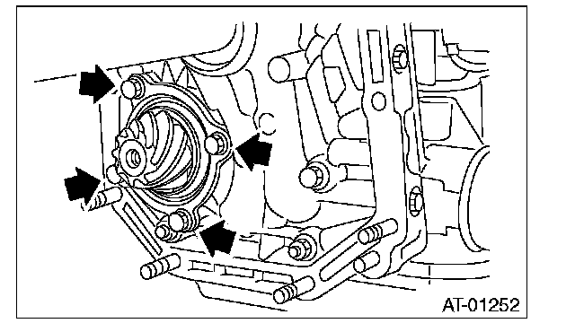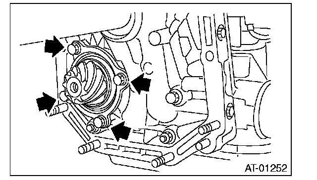 2) Install the oil pump housing assembly to the converter case, and secure them by tightening the four bolts evenly.
