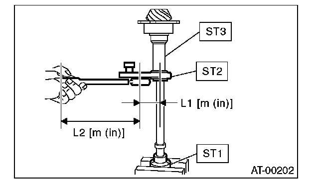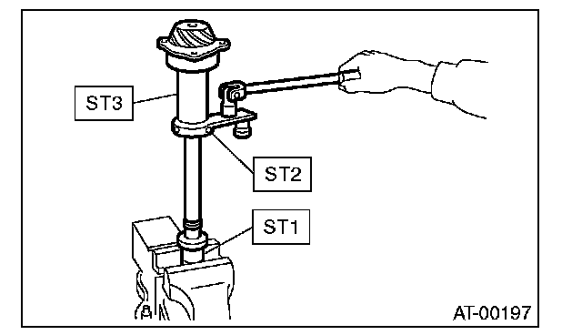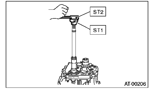 3) Rotate the drive pinion a few times using ST1 and ST2.