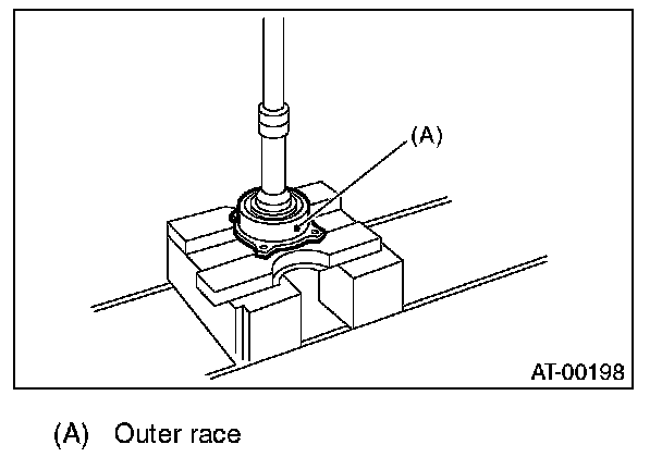 3) Separate the rear roller bearing and outer race from the drive pinion shaft using a press.