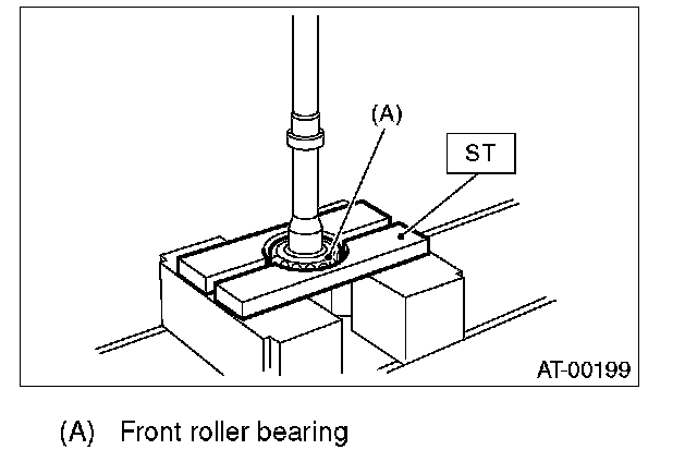 4) Separate the front roller bearing from the drive pinion shaft using a press and the ST.