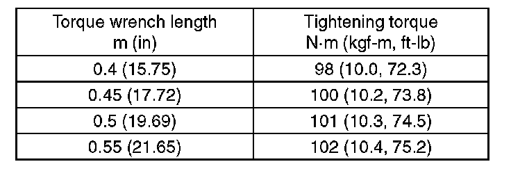 Tightening torque: 41 N-m (4.2 kgf-m, 30.2 ft-lb)