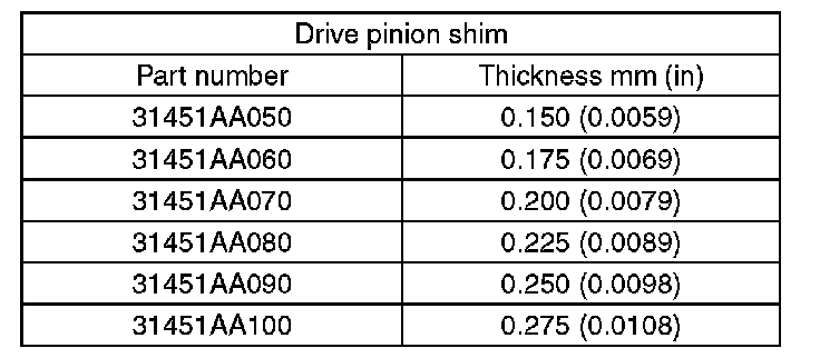 9) Calculate the thickness "t" (mm) of the drive pinion shim.