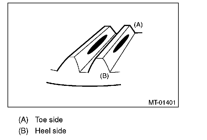 Check item: Tooth contact surface is slightly shifted toward the toe side under a no-load condition. (When driving, it moves towards the heel side.)