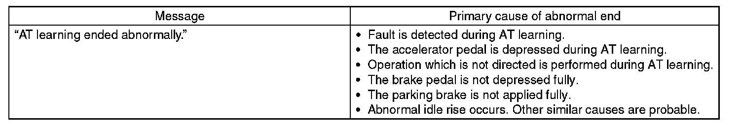 ^ If "Execute AT learning again after fixing troubles of the vehicle" is displayed during learning, select [OK] to display the List of Diagnostics Trouble Code. Retry "AT learning mode" from the beginning after repairing the DTC detecting portion.