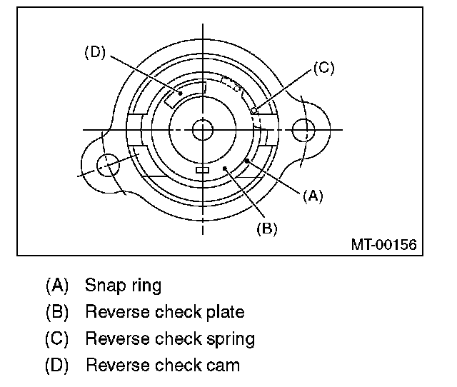1) Shift the shifter arm to "5th" and then to reverse to see if the reverse check mechanism operates properly.