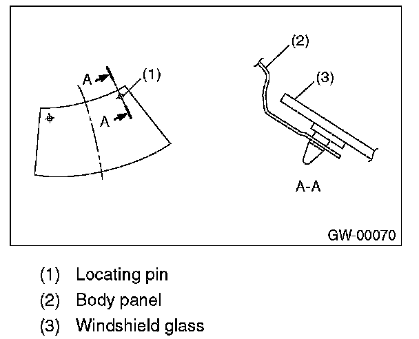 10. Using suction rubber cups, fit the locator pins into the body side, and attach the windshield glass.