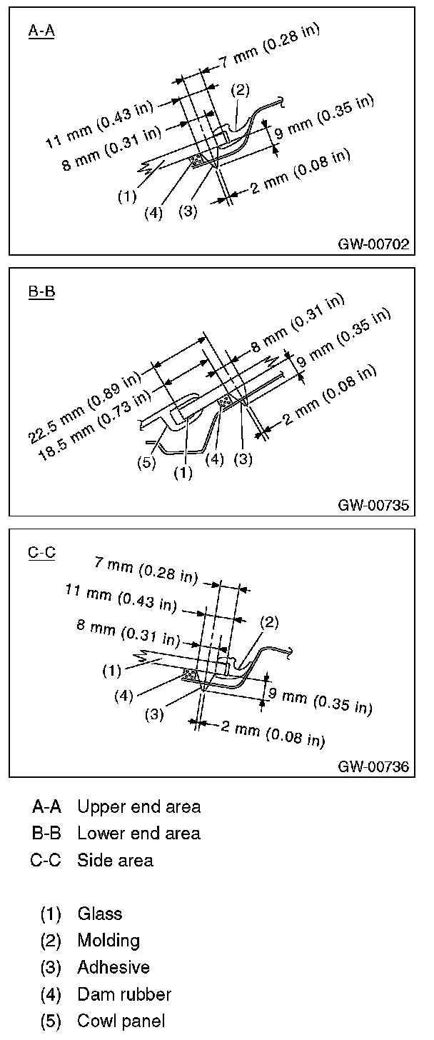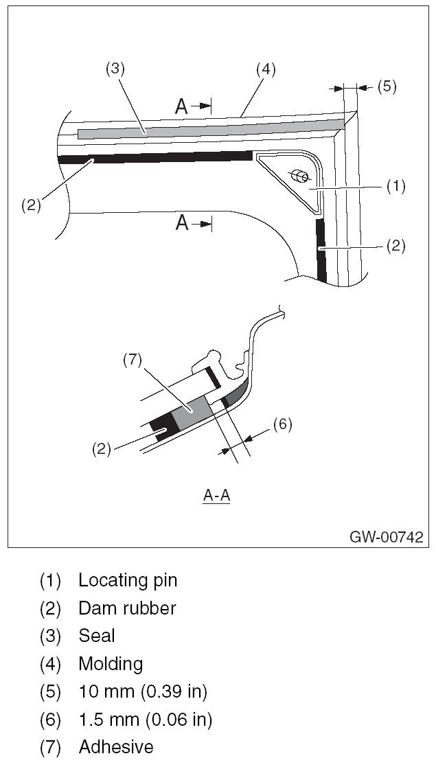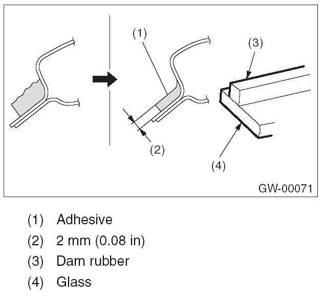 - For minimum drying time and vehicle standing time before driving after bonding, follow instructions or instruction manual from the adhesive manufacturer.