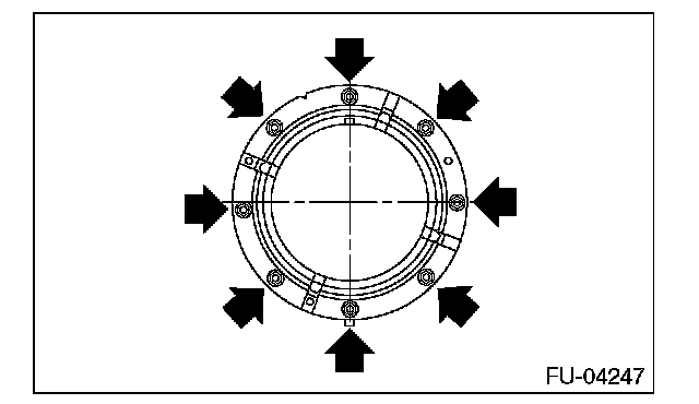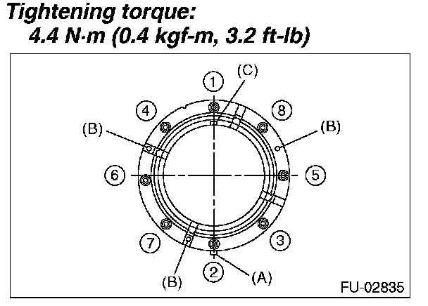 - Tighten the nuts to the specified torque in the order as shown in the figure.