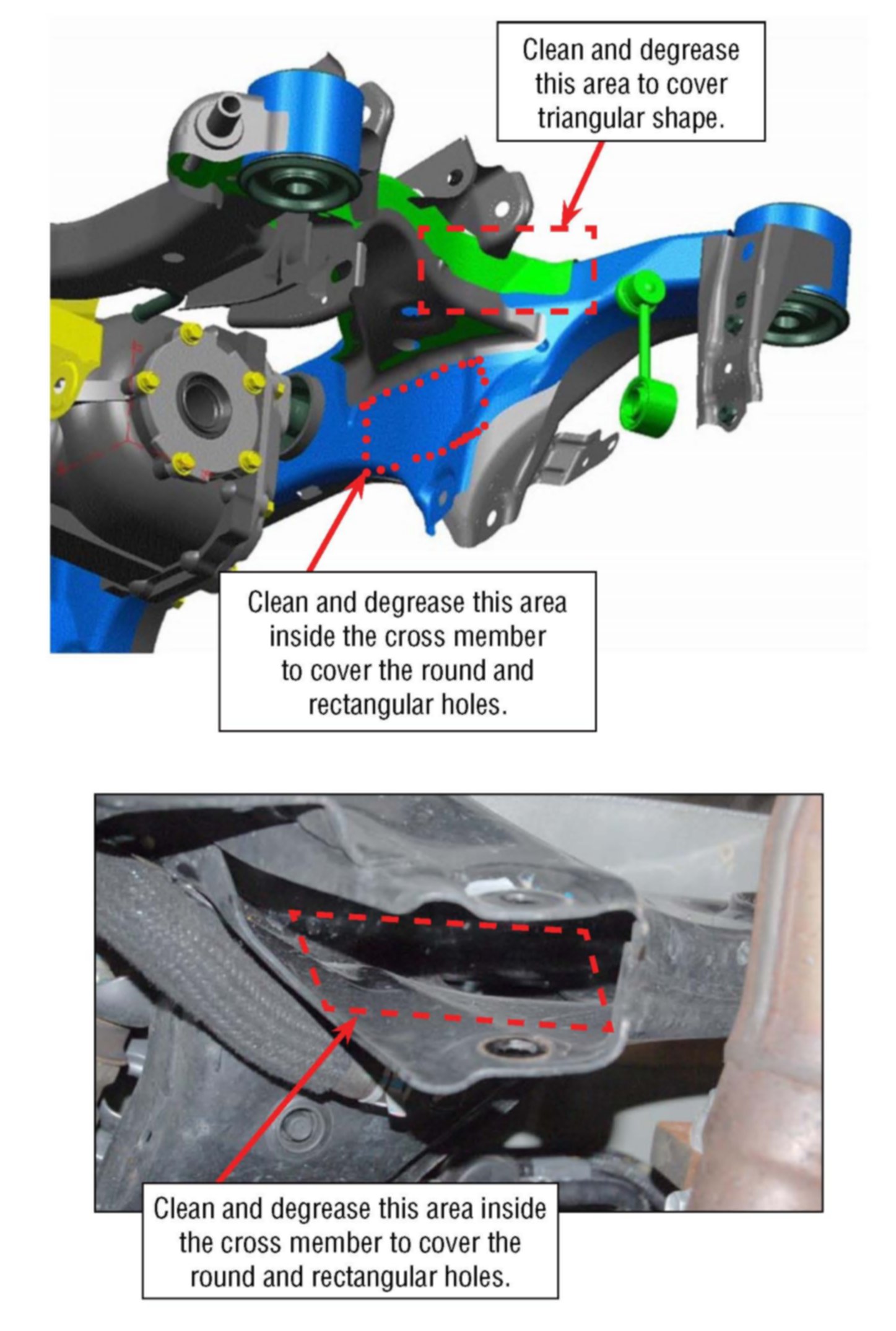 3) Clean and degrease the areas shown below.