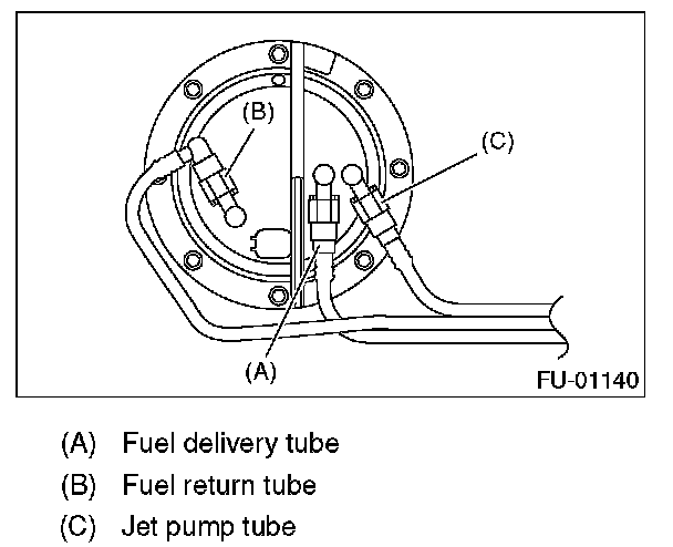 7. Disconnect the quick connector of fuel delivery tube, fuel return tube and jet pump tube.