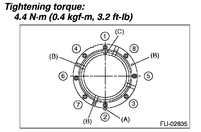- Tighten the nuts to the specified torque in the order as shown in the figure.